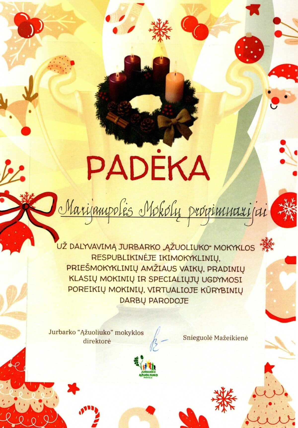 Przidentūroje esančią eglutę papuoš ir mūsų progimnazijos velta knygelė. Ačiū te... -