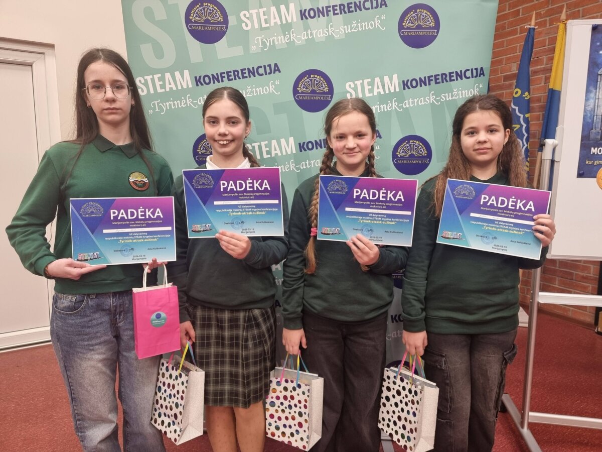 Kovo 19 d. Marijampolės „Šaltinio“ progimnazijoje šurmuliavo respublikinė konferencija „Tyrinėk – atrask – sužinok“, kurioje mūsų mokyklos vardą garsino penkios mokinės: