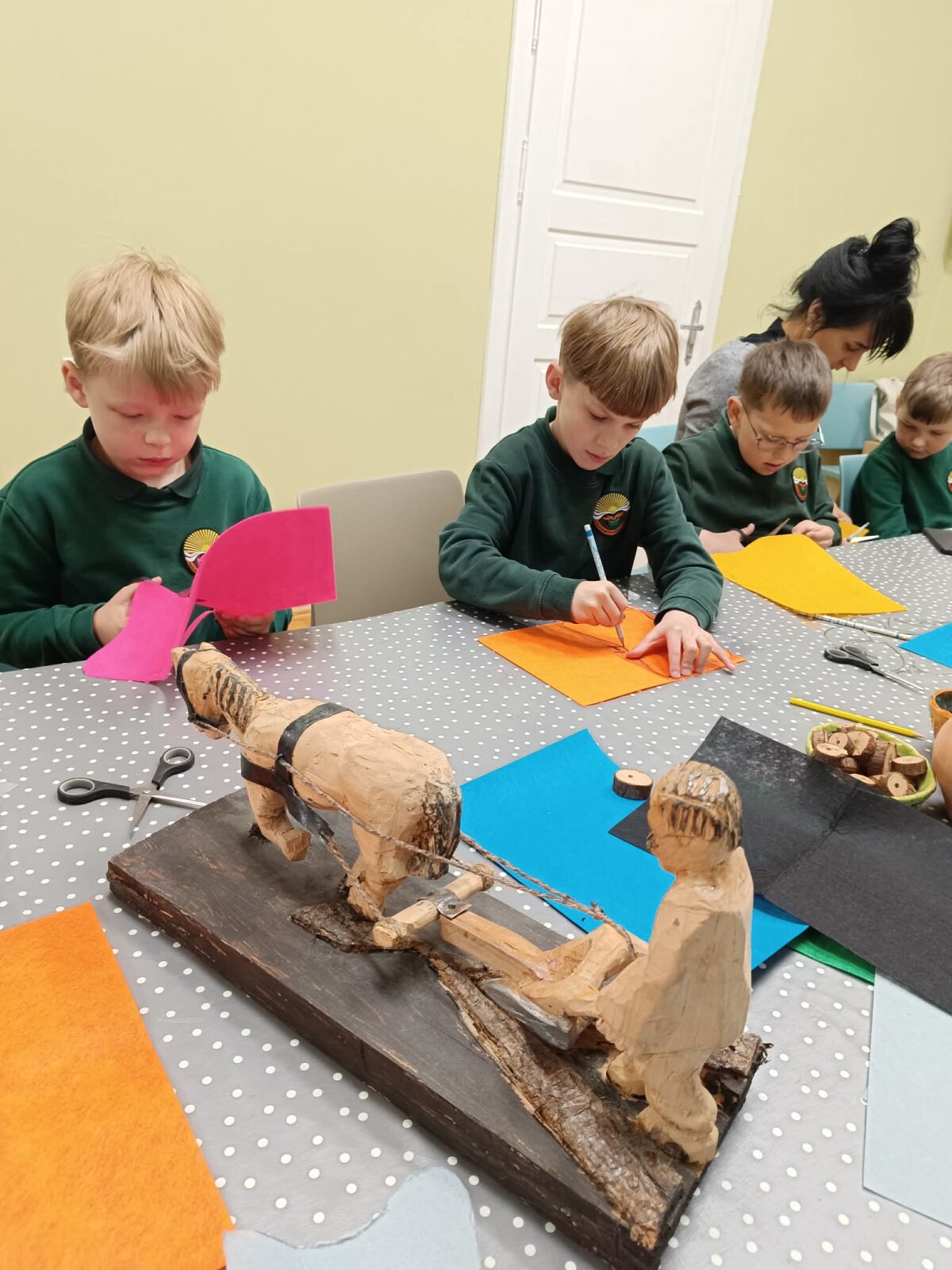 Balandžio 23 dieną progimnazijos 2 klasės mokiniai vyko į K. Griniaus muziejų, kur dalyvavo edukacijoje „Arkliukas – nepaprastas žaisliukas“. Edukacijos metu vaikams suprantamu būdu buvo atskleistas žirgo vaidmuo žmogaus gyvenime nuo seniausių laikų, o praktinėje dalyje vaikai pasigamino arkliuką - žaisliuką iš veltinio.